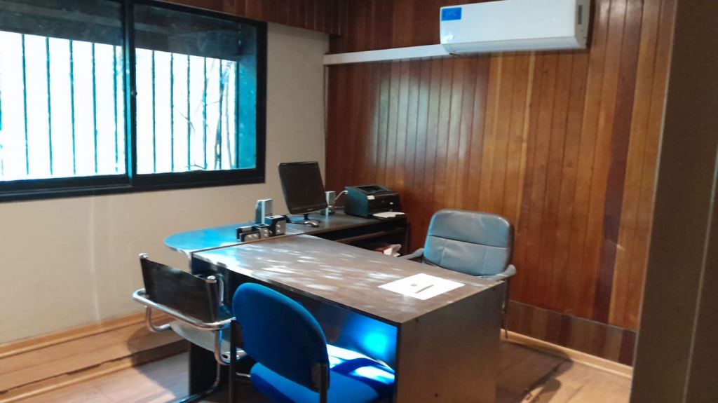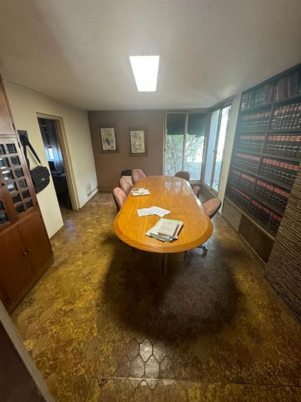 Se accede a través de una puerta independiente. Al entrar, te encuentras con una amplia sala de espera. A mano derecha hay una oficina con una churrasquera y una estufa a leña, que conecta con el patio superior. Si sigues derecho desde la sala de entrada, llegas a una gran oficina con vista al patio. Desde esta oficina, si giras a la izquierda, te encuentras con una entresala de aproximadamente 5x3 metros, que conduce a la cocina. Esta cocina también tiene conexión a la planta baja a través de la escalera en el patio. En este piso hay un antebaño, un baño completo y otra oficina con vista a la calle. Además, hay unas escaleras internas que bajan a la planta baja, pero están bloqueadas por Durlock.
