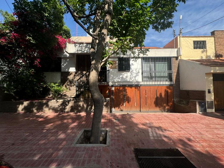 La entrada inferior cuenta con dos cocheras. Al ingresar, te encuentras con un recibidor, y desde allí unas escaleras, a mano izquierda hay una habitación con baño privado, mientras que a mano derecha están los dos estacionamientos, separados por una placa de Durlock. Desde los estacionamientos, puedes acceder a otra sala que incluye una cocina, un baño y un espacio que puede funcionar como comedor u oficina. Esta sala tiene salida al patio de la planta baja, que está equipada con un horno de barro y una churrasquera. Además, desde este patio hay una escalera que conduce al primer piso.