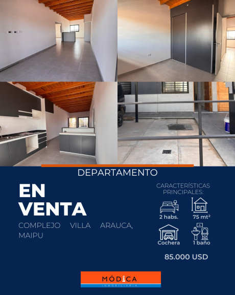 Departamento planta alta, construcción tradicional, ubicado en el complejo Villa Arauca. Consta de 2 dormitorios, baño, cocina comedor integrado, balcón y cochera. Construcción tradicional, pisos de porcelanato, aberturas de aluminio, vidrio DVH,se entregan con amoblamiento de cocina,mesada, termotanque, placares,rejas. Todo eléctrico. Muy cerca de supermercado Changomas,mall Arauca y complejo de canchas de padel en la entrada del mismo. Entrega abril 2025 Valor: U$D 85.000
