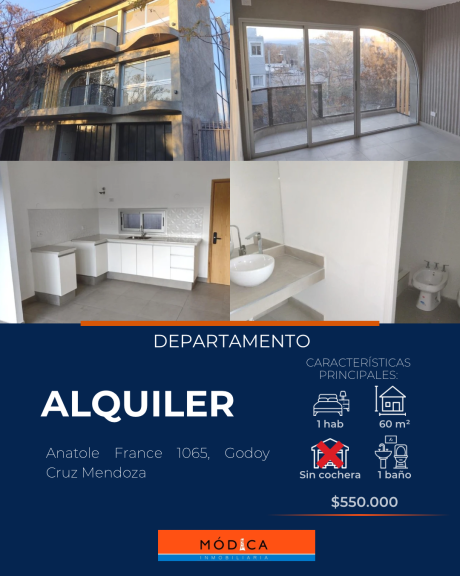 Si estás buscando un departamento moderno, luminoso y con excelentes comodidades en Godoy Cruz, ¡no dudes en contactar a Módica Inmobiliaria para más información!