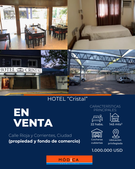 ¡Atención inversores y emprendedores! Modica Inmobiliaria se complace en ofrecerles una increíble oportunidad de inversión en el corazón de Mendoza. Se trata de un reconocido hotel con años de trayectoria y una clientela fija diaria que avala su excelente reputación.