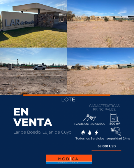 Se vende lote en Barrio Lar de Boedo, zona privilegiada de Chacras, con mucho desarrollo y emprendimientos tanto de barrios privados como centros comerciales, Club Liceo, cerca.