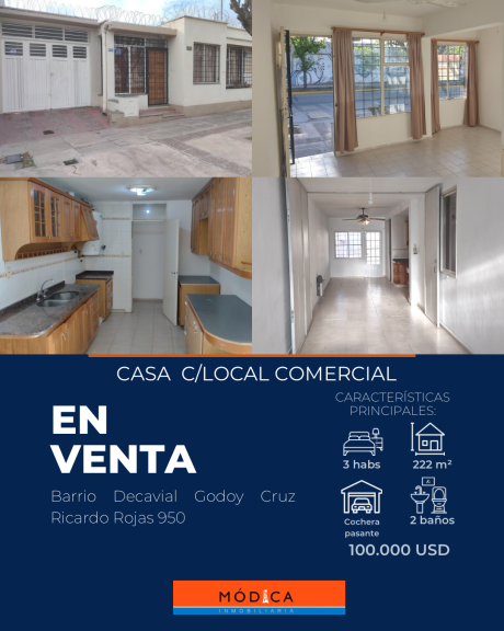 En el corazón de Godoy Cruz, en el prestigioso Barrio Decavial, se encuentra esta hermosa casa que ofrece en venta Módica Inmobiliaria. Ubicada en la calle Ricardo Rojas 950, esta propiedad se encuentra en muy buen estado de conservación.