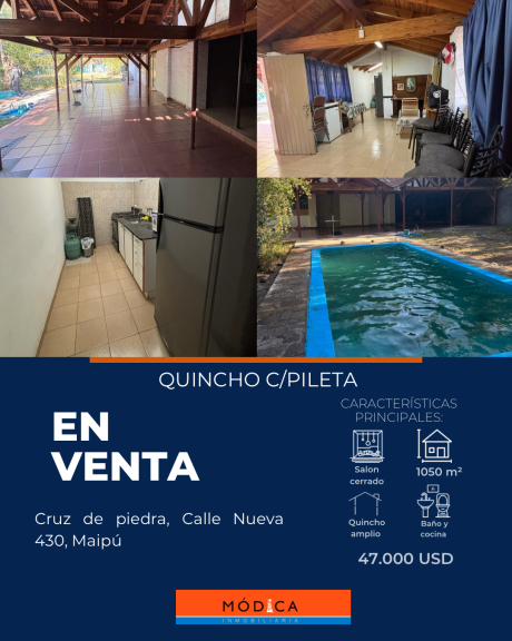 Quincho con pileta en Cruz de Piedra, Maipú