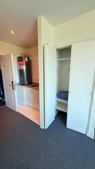 El departamento cuenta con aire acondicionado, una pequeña zona de cocina/comedor, y un baño totalmente renovado.