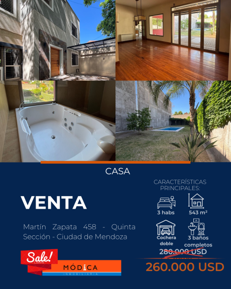 Espectacular casa en Quinta Sección, ubicada en calle Martín Zapata, a metros de Emilio Civit y del Parque General San Martín.