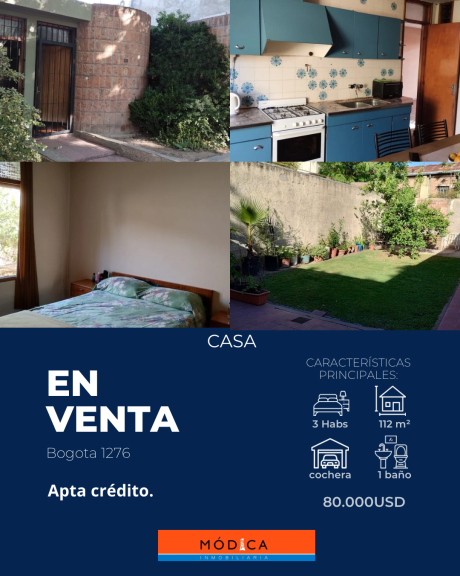 LA MISMA ESTA CONSTITUIDA EN UNA PLANTA, POSEE LIVING COMEDOR, COCINA, 3 DORMITORIOS, UN BAÑO, PLACARES EN TODOS LOS DORMITORIOS, EN EL ULTIMO DORMITORIO, PUEDE HACERSE UN BAÑO, YA QUE DETRAS TIENE CONECCION DE CAÑERIAS. TIEN PLANOS APROBADOS PARA UNA SEGUNDA PLANTA Y UN ESPACIO PARA POSIBLE ESCALERA , LAVANDERIA Y DESPENSA, Y PATIO CON JARDÍN.
