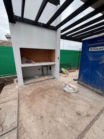 La cochera es para 2 autos(una techada y la otra con pérgola)