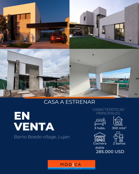 Casa ubicada en barrio Boedo Village, muy buscada por su entorno y zona comercial. La casa está en construcción,con entrega en setiembre de 2025. Superficie total 300 m2, 196m2, cubiertos.