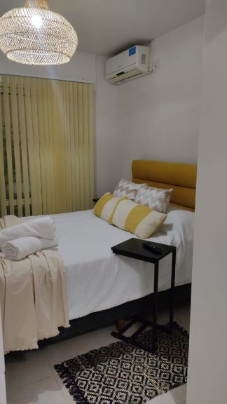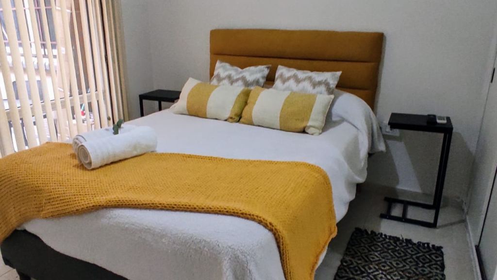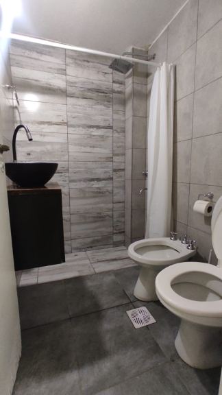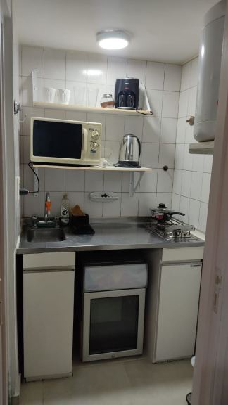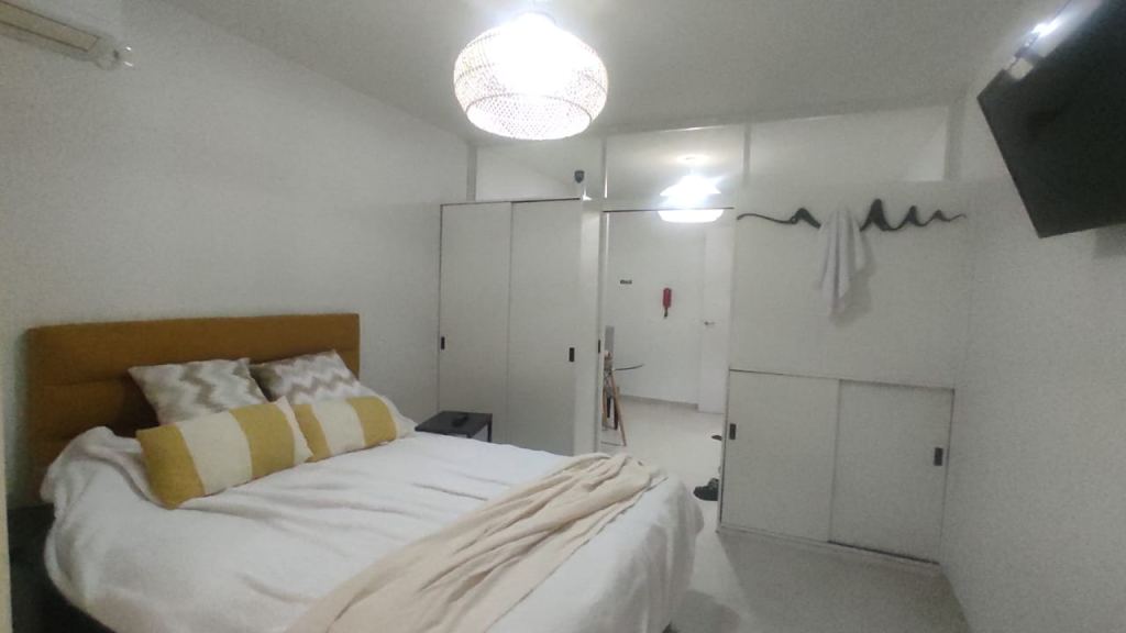 Heladera bajo mesada, microondas, smartv LED 32", cama hotelera nueva de 2 plazas con cubre colchón, acolchado almohadas y sábanas nuevas.
