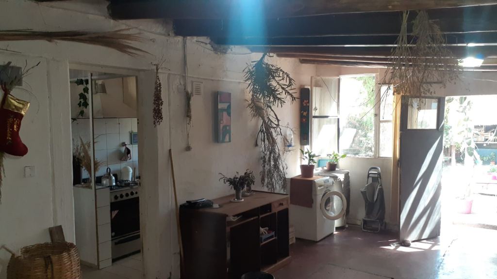 La casa está compuesta por cocina, comedor-estar, dos dormitorios, un baño, jardín en el frente y un amplio patio. La superficie total del terreno es de 220 m².