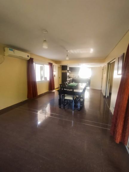 En planta baja posee una amplia y luminosa cocina comedor con grandes ventanales, equipada con anafe y horno a gas empotrado. Cuenta además con un living espacioso con ventanales que se conectan con una galería cerrada, generando un ambiente ideal para reuniones y momentos de descanso. Los ambientes cuentan con pisos de porcelanato, aportando calidad y fácil mantenimiento.