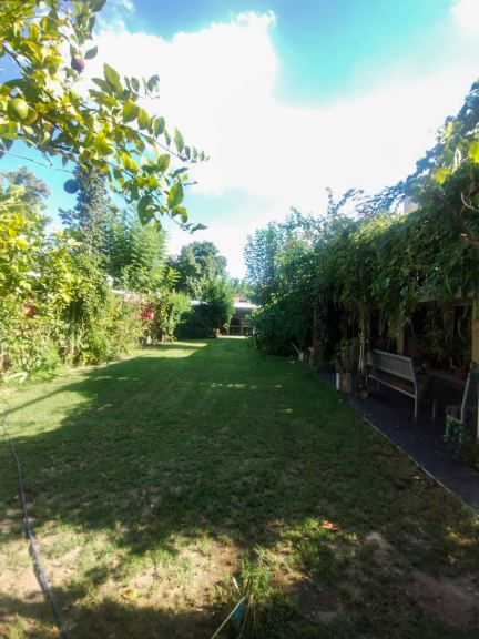 En el exterior se destaca un amplio patio forestado con galería techada, churrasquera con bacha y espacio de guardado. La propiedad también cuenta con un depósito independiente y doble cochera techada.